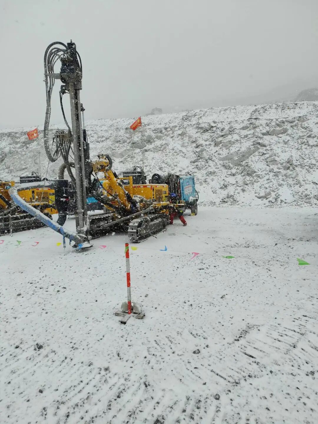 經(jīng)過籌備組半個月的努力,2023年元旦,項目正式開工。元旦期間,正值新疆黑山最寒冷的季節(jié),工地溫度達到零下20度以下,風(fēng)力也不小,有時室外根本站不住人?,F(xiàn)場作業(yè)人員,頂著嚴(yán)寒狂風(fēng),克服重重困難,圓滿完成各項任務(wù)。