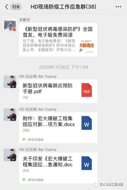 疫情發(fā)生以來,如何加強員工對新冠肺炎的認知和了解,增強員工對抗新冠肺炎的能力,科學(xué)、有效、準確地傳遞相關(guān)知識成為重中之重。工作小組積極行動、迅速響應(yīng),建立了現(xiàn)場防疫工作應(yīng)急群,線上學(xué)習(xí)并貫徹落實中央、工程集團的相關(guān)文件精神,全力開展防疫防控應(yīng)急宣傳。設(shè)置專職人員在群里耐心宣傳新型冠狀病毒感染的肺炎預(yù)防知識,引導(dǎo)員工科學(xué)防范,提高廣大員工的防控意識和自我防范能力。